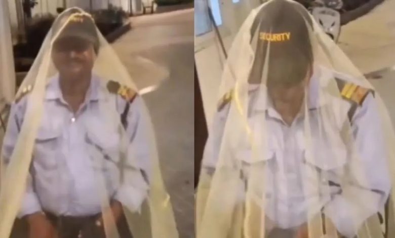 मच्छरदानी ओढ़कर ड्यूटी करता गार्ड, वायरल वीडियो ने बढ़ाई चिंता