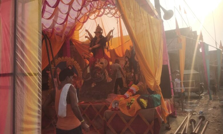 पंडालों में मां दुर्गा की प्रतिमा को स्थापित करने को लेकर पूजा समितियों में उत्साह