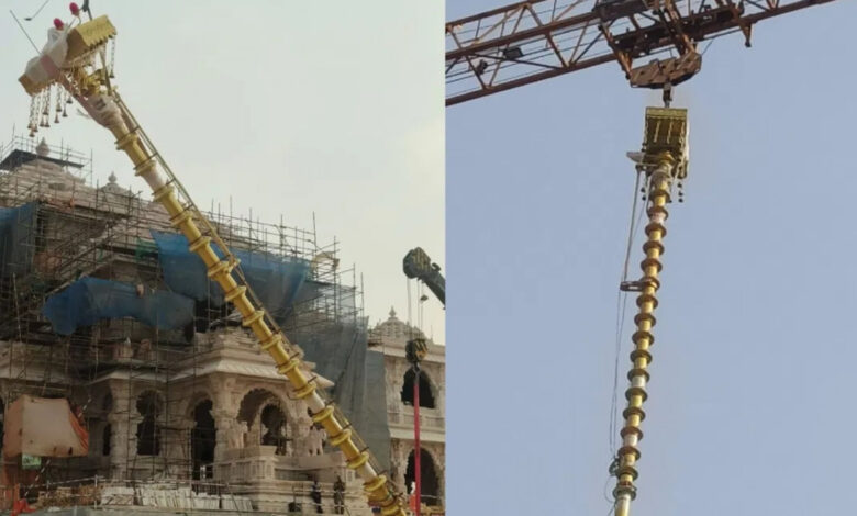 अयोध्या: श्रीराम मंदिर के शिखर पर लगा 42 फिट ऊंचा ध्वज दंड, जय श्रीराम के जयकारों से गूंज उठी राम नगरी